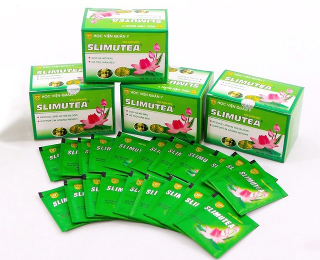 TRÀ GIẢM BÉO SLIMUTEA là sản phẩm do các nhà khoa học của Học viện Quân y nghiên cứu và bào chế dưới dạng trà túi lọc, chủ vị là Lá sen, Thảo quyết minh, Hoàng cầm và Đinh hương. Đây là những dược liệu đã được nhiều nghiên cứu trong và ngoài nước khẳng định có tác dụng hạ mỡ máu, giúp giảm cân hiệu quả đối với những người bị béo phì. Nguyên liệu hoàn toàn tự nhiên, không có hoá chất, thuốc bảo vệ thực vật và được kiểm định trước khi đưa vào sản xuất. Trà giảm béo SLIMUTEA có chất lượng vượt trội đã được các cơ quan chức năng thẩm định và công nhận. Bộ Y tế cấp chứng nhận lưu hành số:11983/2011/YT-CNTC